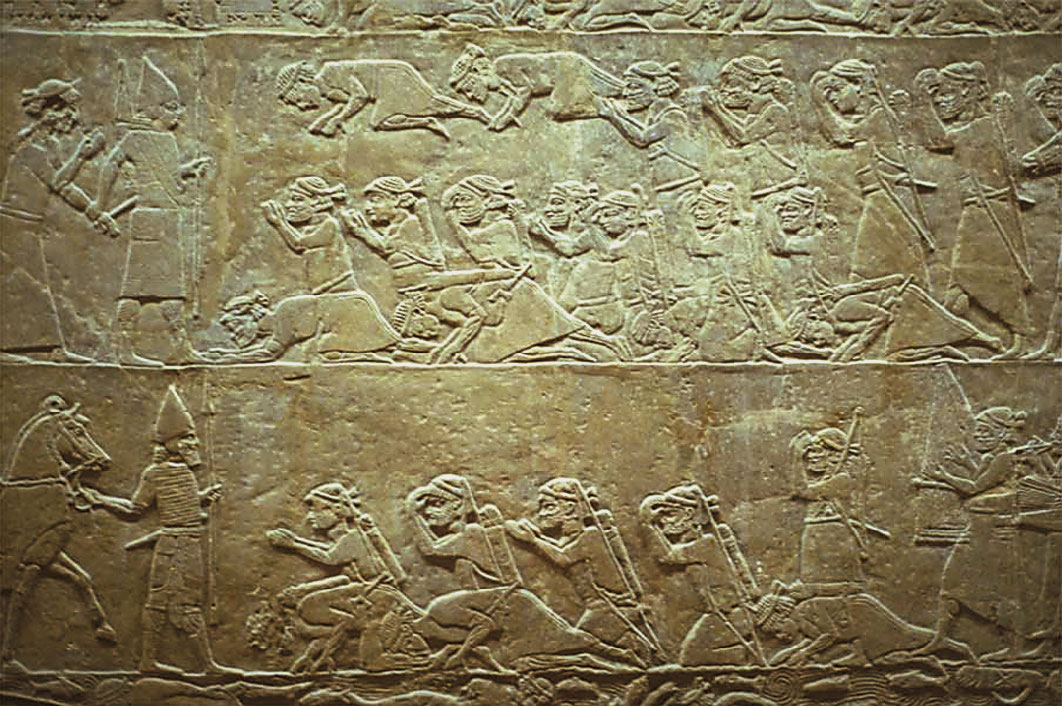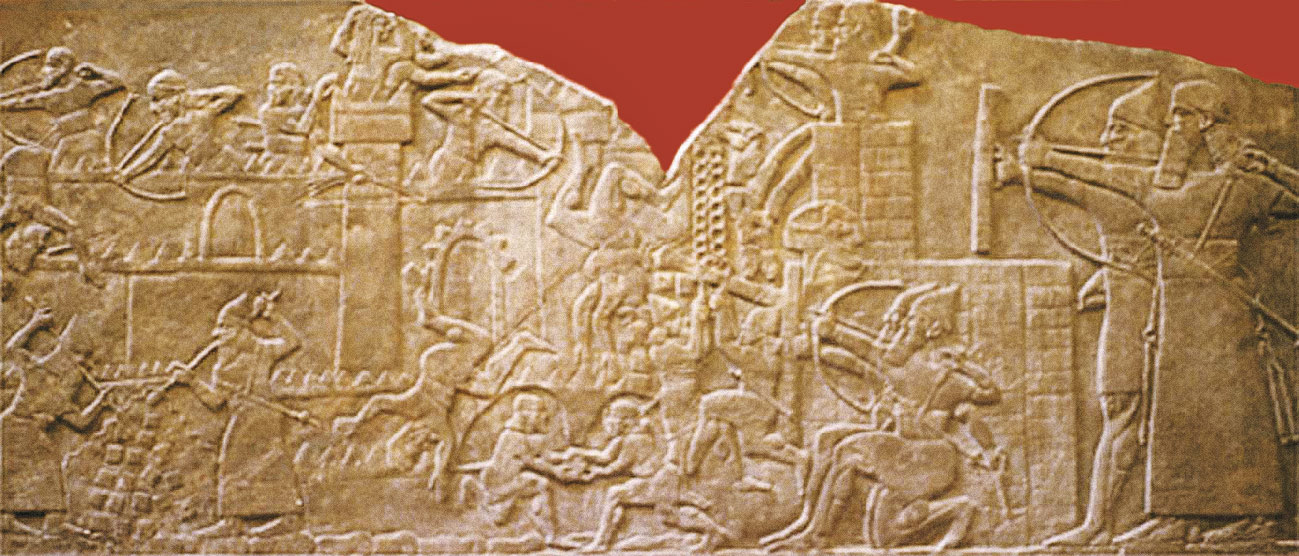 نحت بارز عثرعليه في قصر الملك سنحاريب يمثل حصار القدس |