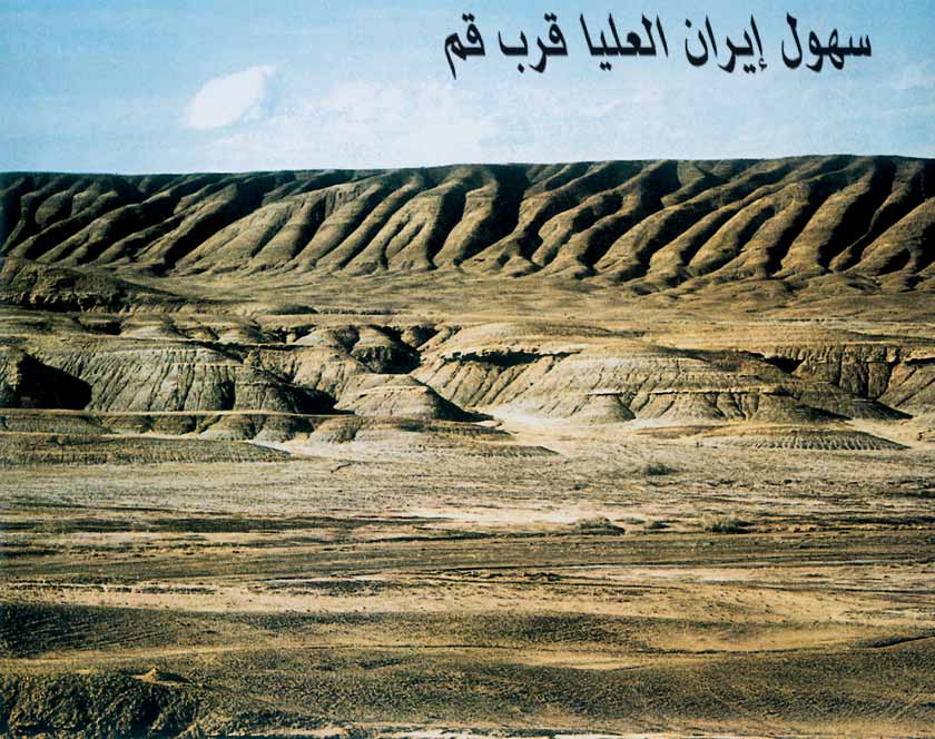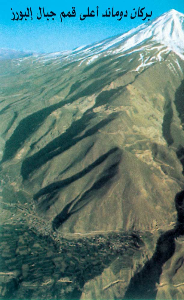 التضاريس: تشمل إيران الجزأين الغربي والمركزي من الهضبة الإيرانية والقسم الجنوبي الشرقي من هضبة أرمينية الذي يشغل الزاوية الشمالية الغربية من إيران، ويتفرع منها باتجاه الجنوب والجنوب الشرقي مجموعتان من السلاسل الجبلية سلسلة شمالية وسلسلة جنوبية تشكلان الجبال الهامشية لإيران، وترتفع القمم الجبلية في هذه السلاسل إلى أكثر من 3000- 4000م. تحصر بينها هضاباً داخلية يراوح ارتفاعها بين 1000 و2000م، وتنهض ضمن هذه الهضاب سلاسل جبلية تشكل سلاسل إيران الشرقية وجبال إيران الوسطى التي يصل ارتفاعها إلى 4420م (جبل هزار) و4042م (جبل تافتان). وتنهض ضمن حدود الهضبة الأرمينية براكين سبلان الخامدة (4811م) وسيهند (3722م)، وكذلك يوجد على أطراف الجبال الشمالية مجموعة من القمم، ففي الغرب منها جبال إلبورز Elburs الواقعة إلى الجنوب من شواطئ بحر قزوين، وتمتد بطول نحو 900كم وعرض 120كم. وتتألف من عدة سلاسل متوازية، تتصف بسفوحها الشديدة الانحدار، ويصل ارتفاعها إلى 5671م في بركان دماوند، وغالبية صخور هذه السلاسل من الحجر الكلسي والحجر الرملي. وإلى الشرق من هذه المجموعة تقع الجبال الممتدة بين خراسان وتركمنستان، حيث يوجد على الشريط الشمالي لخراسان جبال كوبت التي ترتفع إلى 3148م (قمة هزار مسجد) والتي تمتد جزئياً لما وراء الحدود الإيرانية. ويفصل السلسلة الجنوبية لجبال نيسـابور (نيشابور) عن جبال كوبت وادٍ كبير يستخدم في الزراعة المروية. وتمتد إلى الشمال من أقدام جبال إلبورز السهول المنخفضة لشواطئ بحر قزوين. وتمتد على الحدود الشمالية الغربية لإيران مع تركية سلسلة كردستان. وتضم القوس الهامشي الجنوبي والجنوبي الغربي لإيران جبال زغروس التي تشكل منظومة جبلية تقع جنوب غربي الهضبة الإيرانية وتمتد في العراق وإيران بطول 1600كم وعرض يراوح بين 200-300كم. وتتألف من عدد كبير من السلاسل المتوازية (15-20) يفصل بعضها عن بعض عدد كبير من الأودية والأحواض البينية. وأعلى قمة في جبال زغروس ترتفع إلى 4551م (جبل زاوده). وتتألف صخور زغروس أساساً من الحجر الكلسي وتتطور فيها المظاهر الكارستية، تتصف بوجود القباب الملحية الضخمة، وتوجد إلى الجنوب الغربي من أقدام هذه الجبال المكامن النفطية. على أن قسماً كبيراً من سفوح هذه الجبال صحراوي.