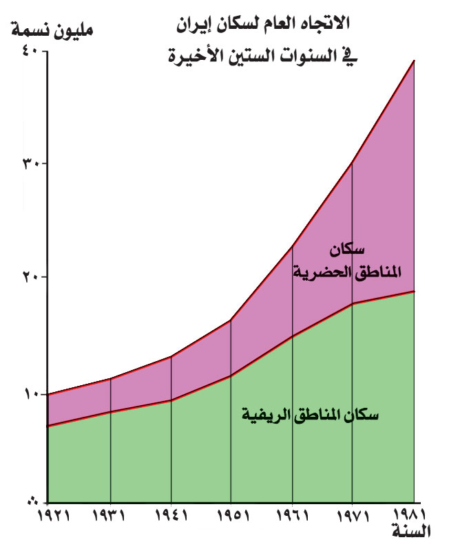 والجدول التالي يوضح طبيعة تزايد السكان في إيران بين عام 1933 و1998