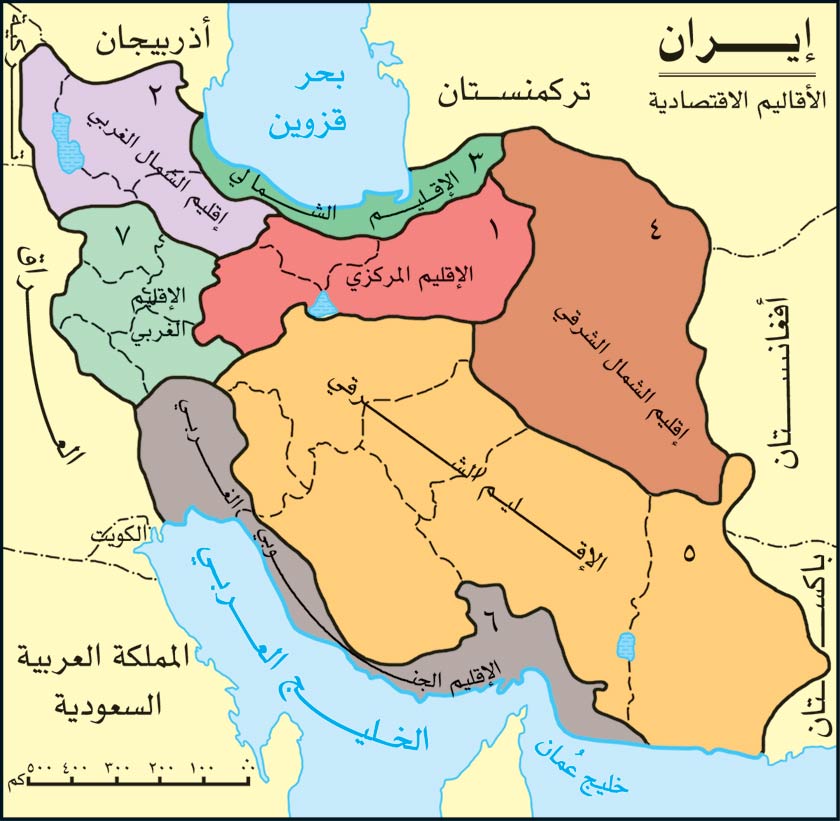 الأقاليم الطبيعية: يمكن من دراسة المناخ السائد والتضاريس والتربة والنبيت في إيران تحديد الأقاليم الطبيعية التالية: