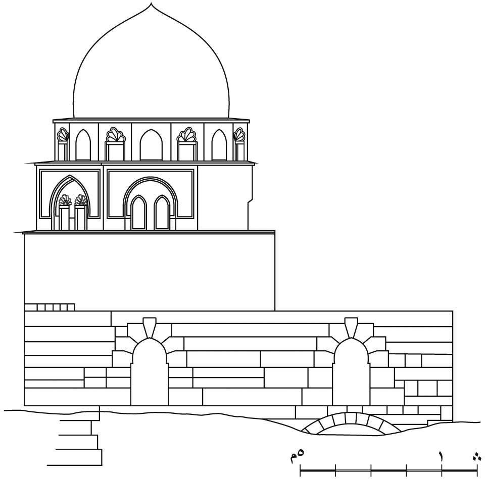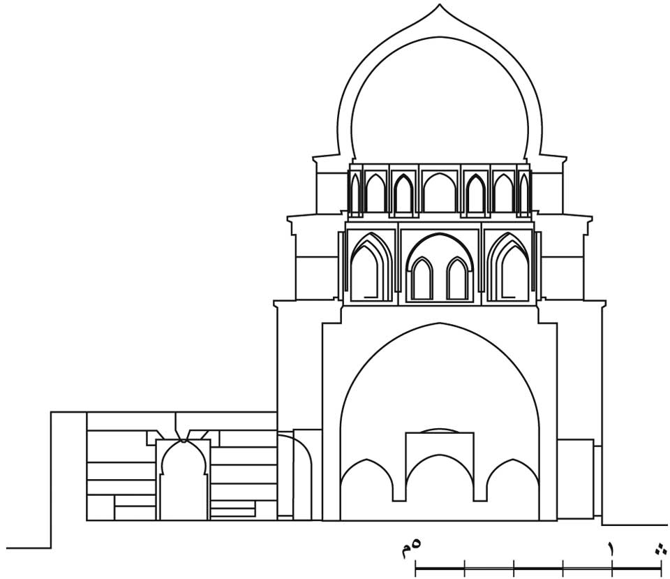 | الواجهة الشرقية لمقام ابن منكورس | مقطع أ ـ ب في مقام ابن منكورس |