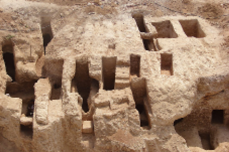 وهي مدافن جماعية وقبور فردية، تم تحديد ثلاثة أنماط للدفن وذلك بناء على مداخلها: النمط الأول بشكل بئر، النمط الثاني بشكل درج، أما النمط الثالث فهو بشكل قبر فردي.