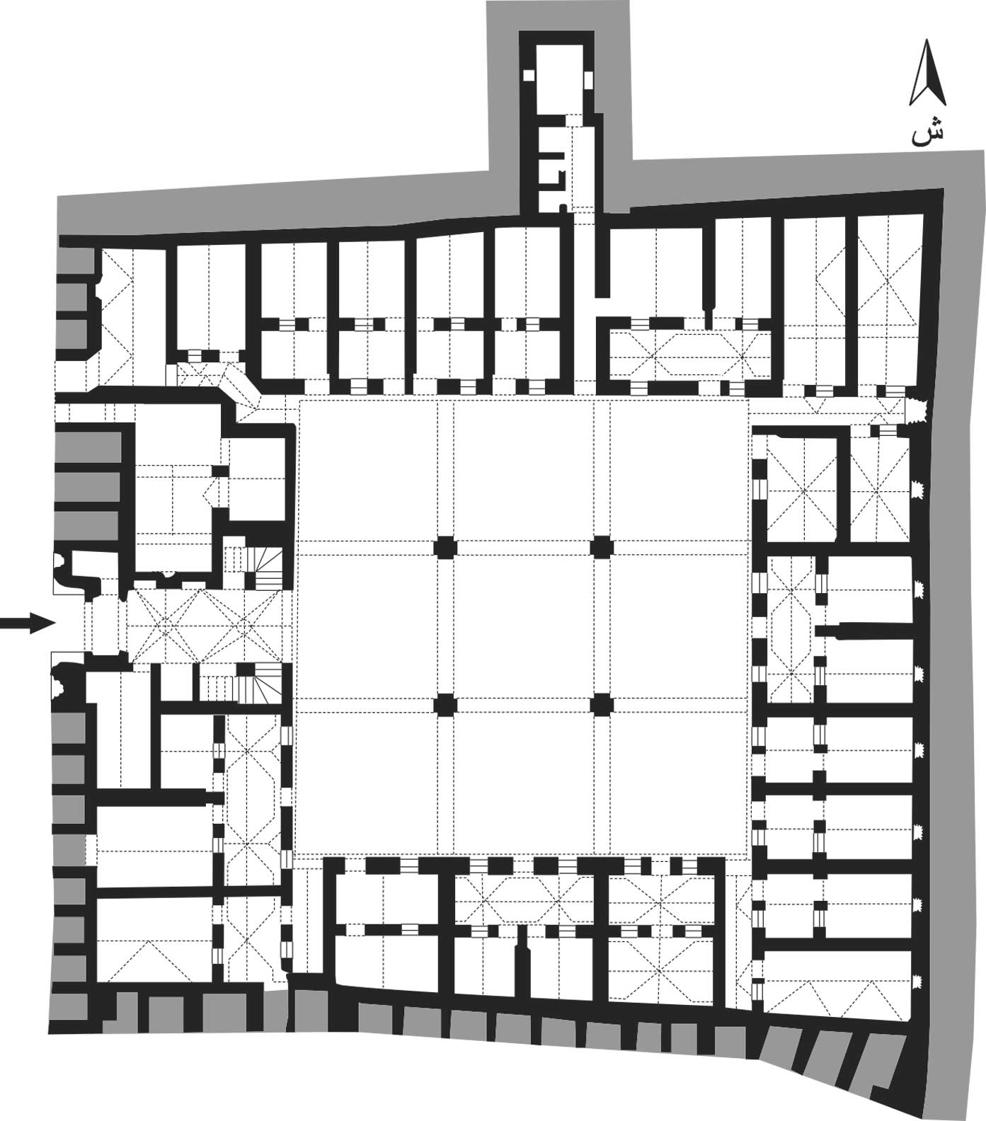 إن مخطط المسجد يبين بوضوح أنه لا يتبع أي مخطط للمساجد من جهة مكوناتها الرئيسية.
