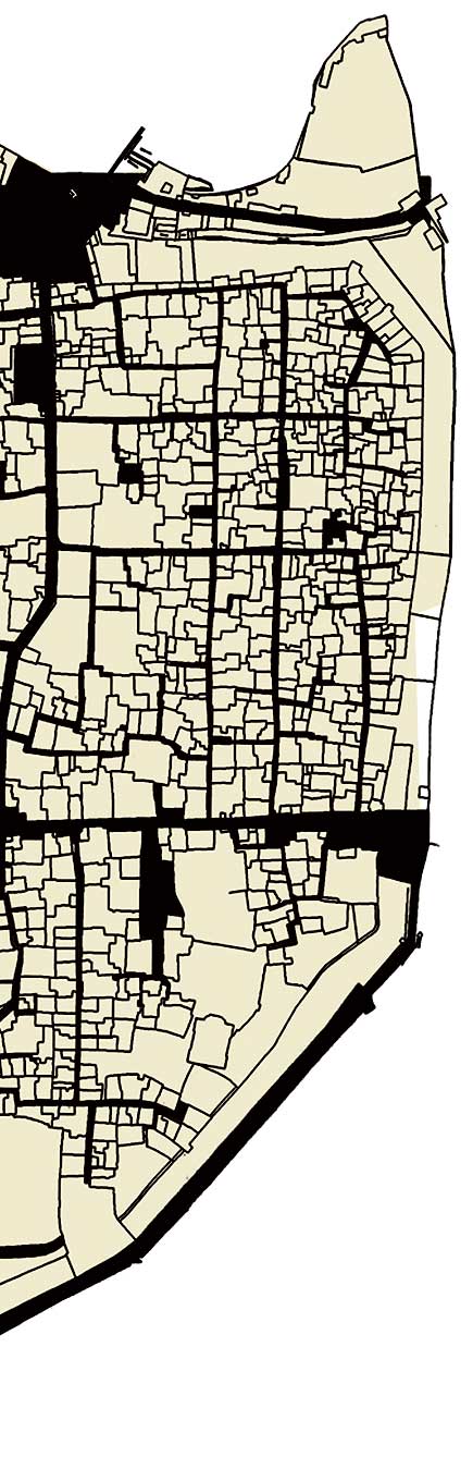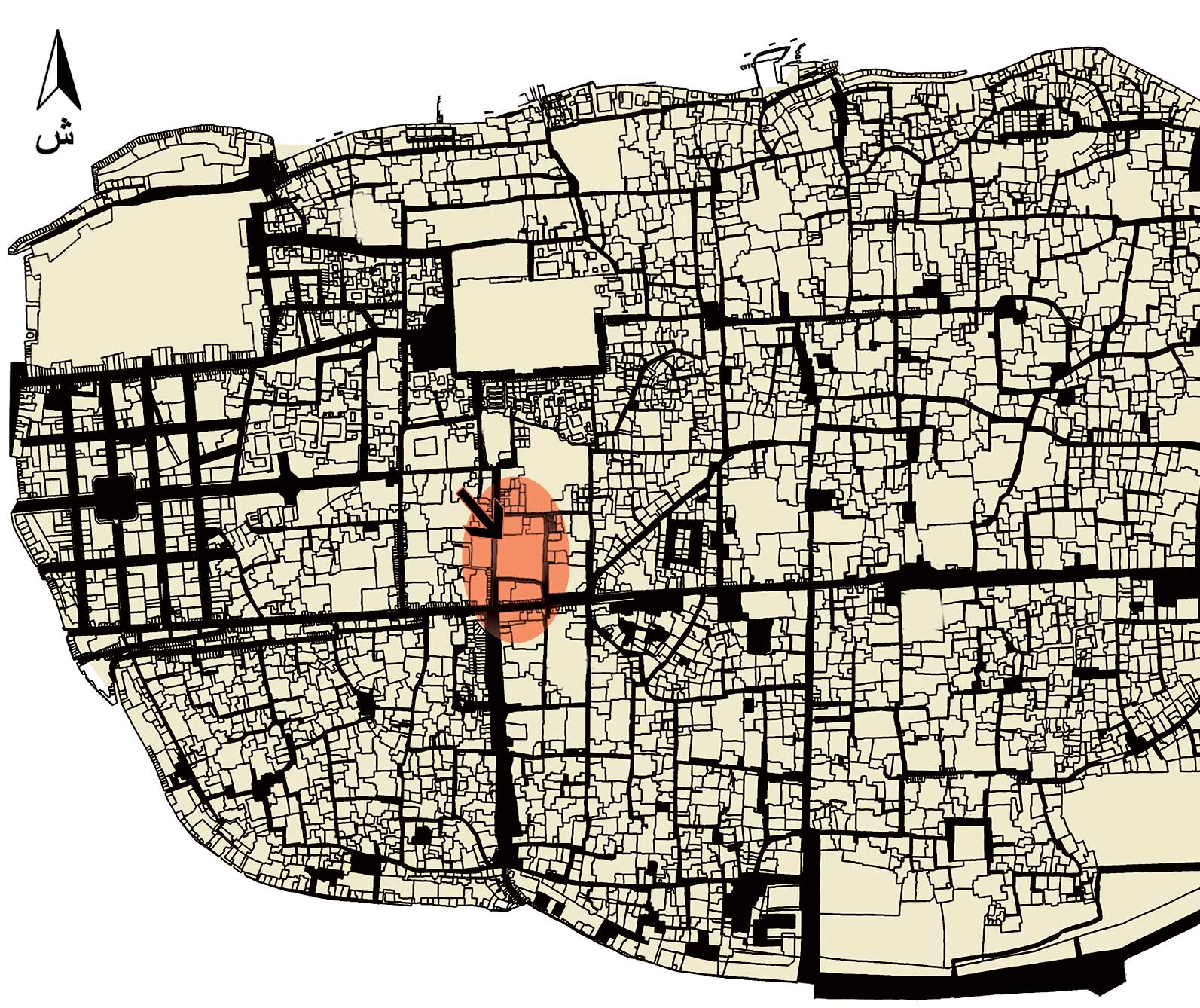 | مخطط لمدية دمشق القديمة وموقع خان أسعد باشا العظم فيها |