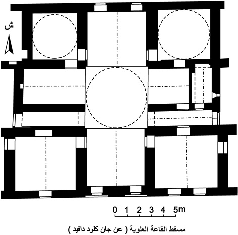 بنيت القاعة على المخطط ذي الأواوين الأربعة المتعامدة، سقف القسم المركزي منها بقبة نصف كروية من دون رقبة تقوم فوق إفريز مزخرف بمثلثات كروية، كما سقفت كل من الغرفتين على جانبي الإيوان الشمالي بقبة، وسقفت باقي أجزاء القاعة بقبوات برميلية متطاولة.