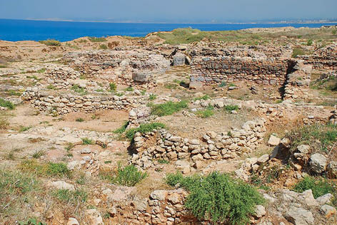 عُثر على مستوطنة فيها دلائل على تنظيم مدني، وهي ذات طابع تجاري، وفيها شارع مرصوف يصعد نحو الشمال باتجاه قمة التل، وأبنية ممتدة حتى الطرف الشرقي من الموقع الهلنستي، أي ما يقارب ٦٠٠م طولاً من الشرق نحو الغرب. وهناك مقبرة طولها ٢٠٠م من الشرق إلى الغرب يبلغ عرضها أكثر من ٥٠م، احتوت على مئات القبور المحفورة في الصخر، يحتوي معظمها على رفات ميت مستلقٍ على الظهر يتجه رأسه إلى الشرق، يرافقه أحياناً بعض الأثاث الجنائزي كالأواني والحلي الزجاجية والفخارية والحجرية، وتدل دراسة الفخار في هذه المقبرة على وجود فخار مستورد من إفريقيا ومن قبرص .