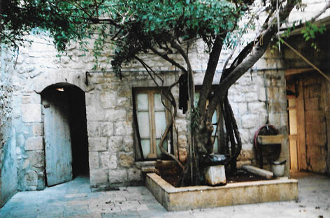 تتألف الواجهة الداخلية الشمالية للباحة بدءاً من الغرب من باب تعلوه قوس مجزوءة يليه نافذتان مستطيلتان، يليهما دهليز المدخل. وتضم في الطابق الأول: ثلاث نوافذ تعلو كلاً منها قوس مجزوءة نصف دائرية تقريباً.