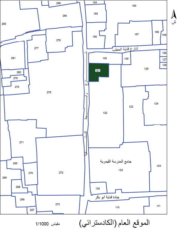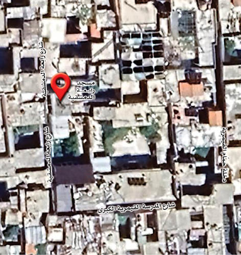 «مسجد السيدة رابعة الشامية المتصوفة، جدّده نور الدولة علي بن قرسق سنة 636هـ».