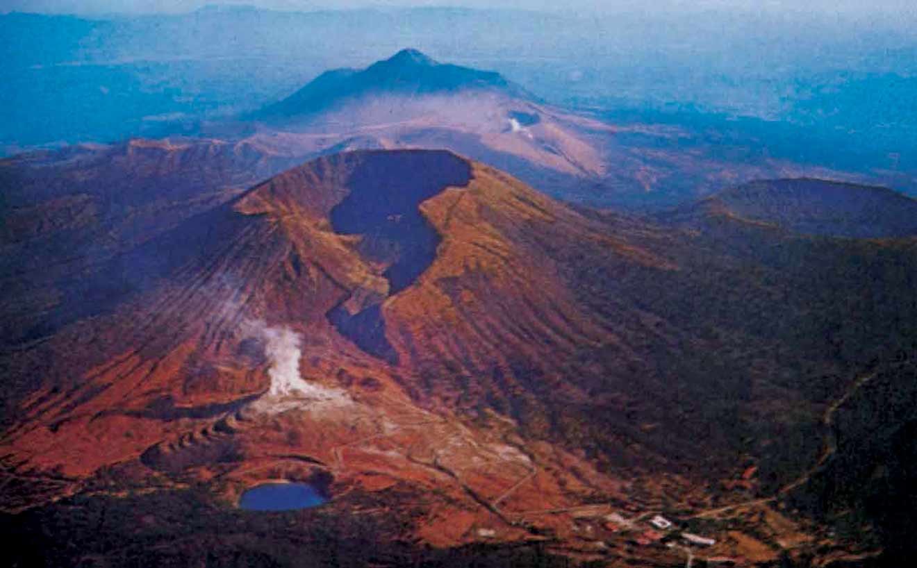 سلسلة كيريشيما في جزيرة كيوشو اليابانية وفيها عدد من البراكين النشطة |