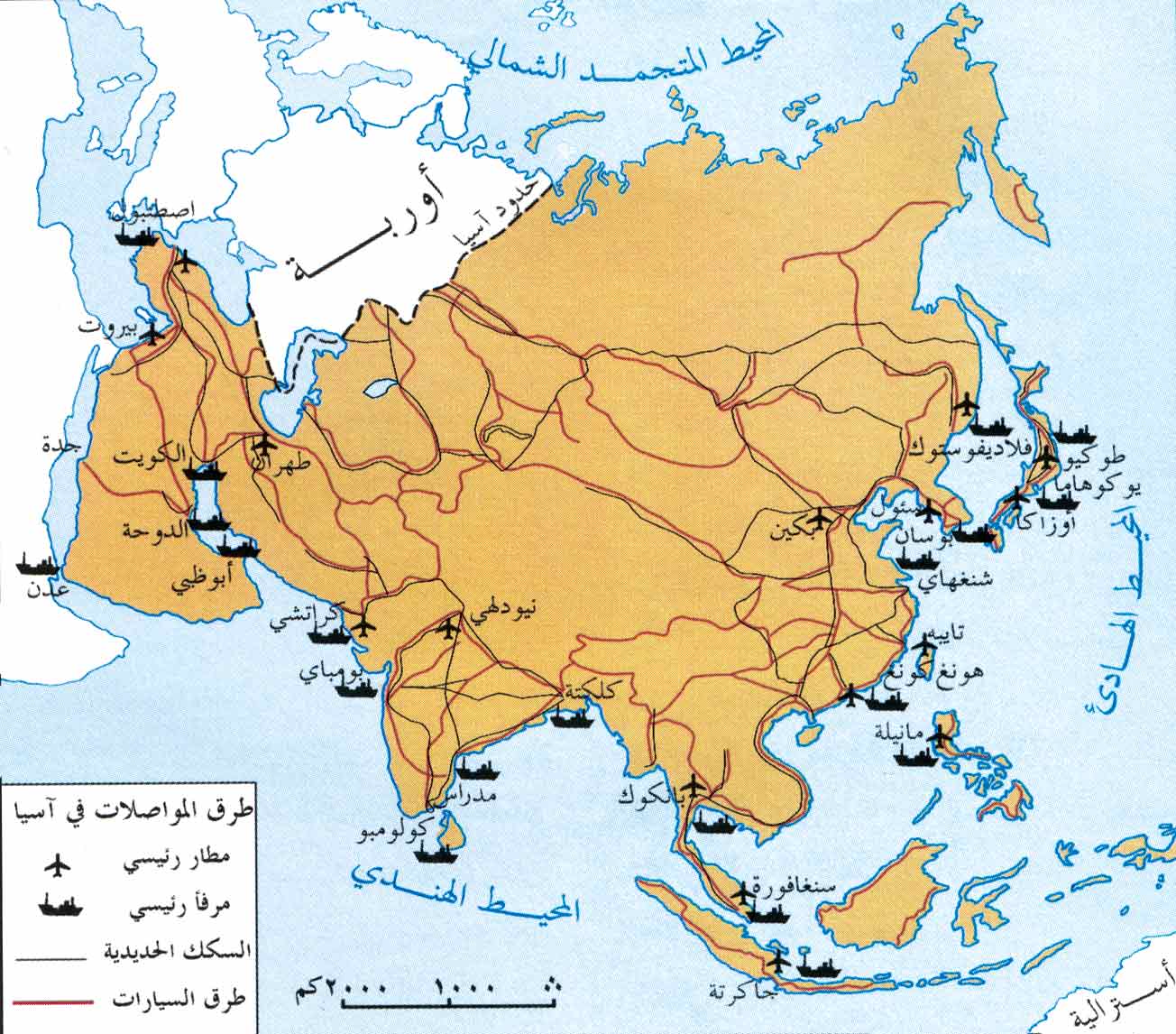 نجحت روسية في مد الخط الحديدي الوحيد عبر سيبيرية الذي يصل بين شرقي آسيا الشمالية وغربيها، كذلك تمكنت الهند واليابان والصين الشعبية مؤخراً من بناء خطوط حديدية كثيفة متطورة تصل المدن والمناطق الداخلية والساحلية بعضها ببعض إضافة إلى شبكات الطرق الحديثة التي تربط بين معظم المدن داخل البلدان الآسيوية.