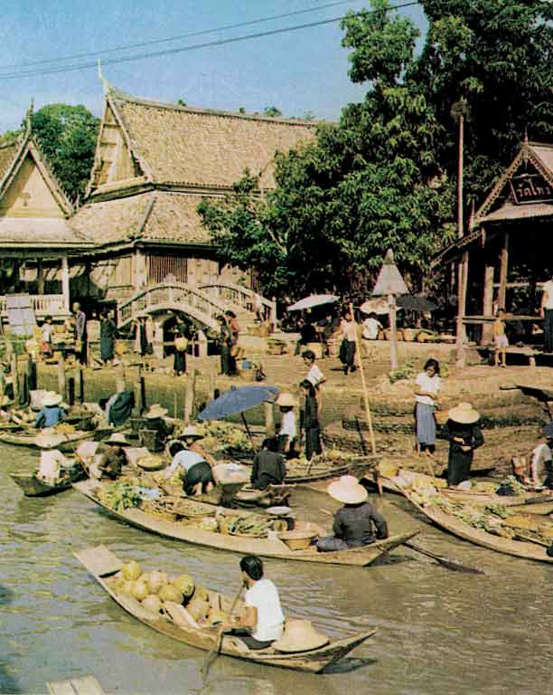 باعة في قواربهم في أقنية مدينة بانكوك |
