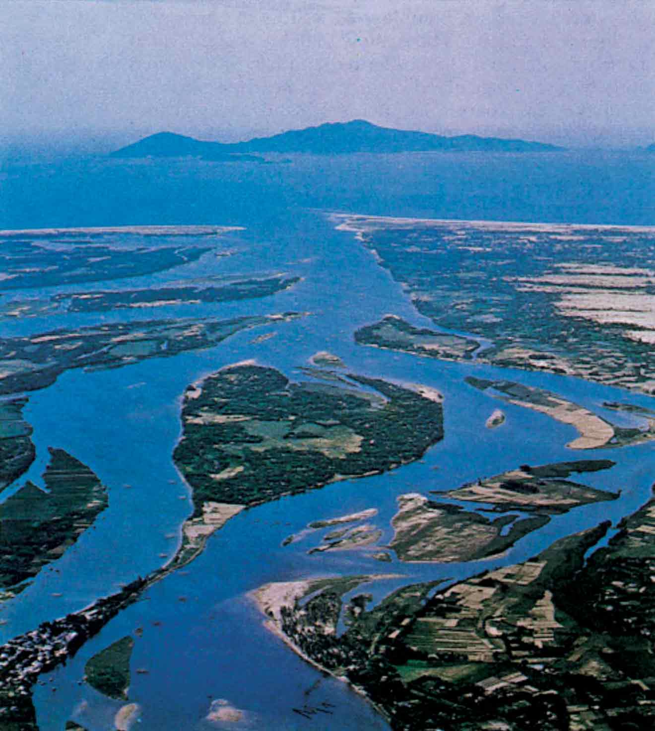 جزء من دلتا نهر المكونغ وهو يجتاز شمالي فييتنام ويصب في بحر الصين الجنوبي |