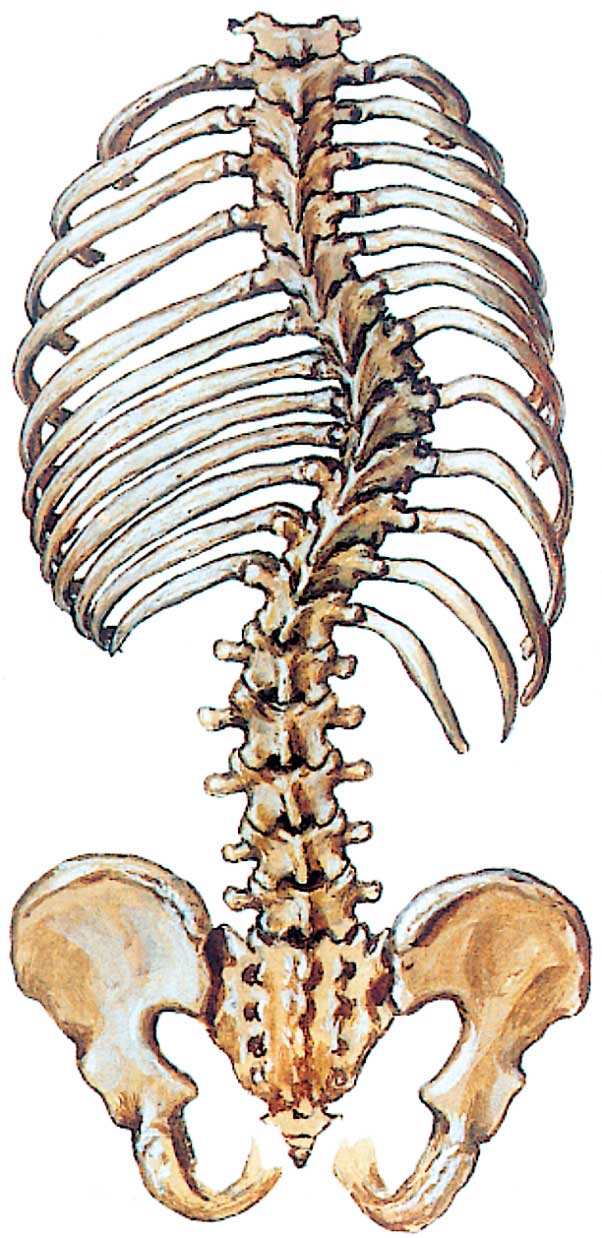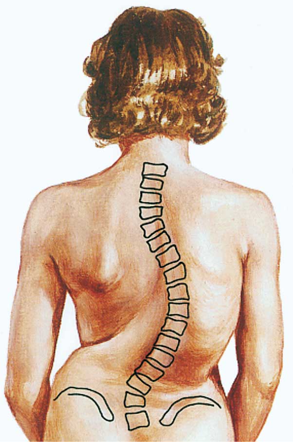 1ـ الجنفscoliosis: هو انحناء العمود الفقري نحو الجانب، وله أشكال عدة: الجنف الأساسي، والجنف التالي لآفة عضوية (كالفقرة النصفية، وشلل الأطفال)، والجنف المرافق لفتق النواة اللبية، وهو مؤقت يزول بشفاء الإصابة، والجنف التالي لقصر أحد الطرفين السفليين، وأهم هذه الأشكال هو الجنف الأساسي الذي يظهر في الطفولة أو في سن اليفع، ويزداد تدريجياً حتى يكتمل النمو العظمي، ويكون التشوه الأولي موضَّعاً إما في الناحية الظهرية، وهو الأسوأ إنذاراً، أو في الناحية القطنية، وهو أقل تشويهاً، وأقلّ إنذاراً، ويترافق الانحناء الأولي مع انحناء معاوض في الفقرات أعلاه، وفي أسفله. ونتيجة هذا التشوه ودوران الفقرات حول محورها العمودي؛ فإن القفص الصدري يتشوه وتندفع الأضلاع إلى أحد الجانبين مشكِّلةً منظراً مشوهاً.