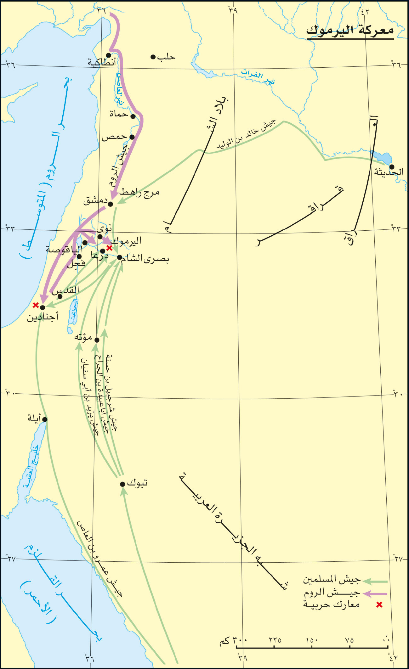 معركة اليرموك إحدى معركتين فاصلتين بين دولة الإسلام في القرن الأول الهجري وامبراطوريتي الروم والفرس، فكانت معركة القادسية الفاصلة بين المسلمين والفرس، وكانت اليرموك الفاصلة بينهم وبين الروم، فهي اليقظة التي أراحت بلاد الشام من الكابوس البيزنطي، وغادر بعدها هرقل قيصر الروم أنطاكية التي كانت عاصمة الروم في الشام إلى القسطنطينية، وقال: «أما الشام؛ فلا شام».