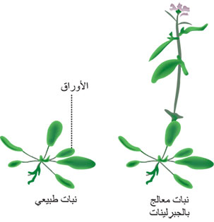 ج-الجبرلينات gibberellins: يمثلها حمض الجبرليك gibberellic acid، وتؤثر في استطالة السوق والأوراق وأعضاء التكاثر الشكل (10)، وترفع معدل إنتاش البذور، وتعمل منشطةً أحياناً، ومثبطةً أحياناً أخرى.