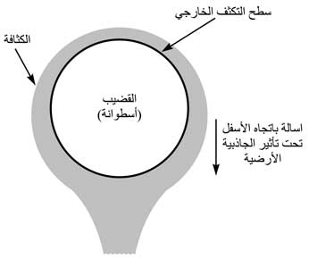 الشكل (3) تشكل التكثف الغشائي على سطح أسطوانة (مقطع عرضي). |