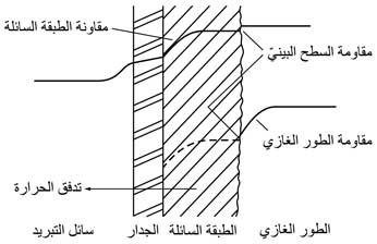 1- المقاومة الحرارية الناتجة من السطح البيني بخار-سائل vapor – liquid interface: وهي في حالة البخار المشبع صغيرة يمكن إهمالها، في حين تكون كبيرة في حالة وجود غاز غير قابل للتكثف أو مزيج بخاري يحوي عدداً من المكونات.