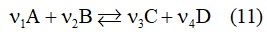 يُعبَّر عن حالة التوازن الكيميائي في تفاعل المركباتA وB و CوD بالمعادلة (11):