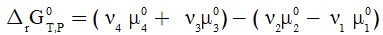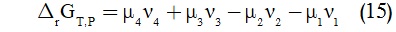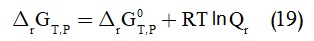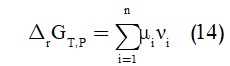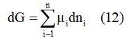 وعند درجة حرارة وضغط ثابتين، يعطى تغير الطاقة الحرة لجيبس بالمعادلة (12):