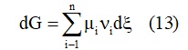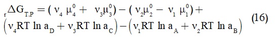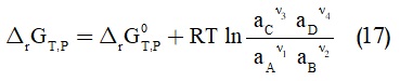 بتعويض الكمون الكيميائي بعباراته المعرّفة سابقاً تكون العلاقة (16):