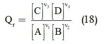 بالتعويض في التوازن الكيميائي المدروس أعلاه تنتج المعادلة (15):
