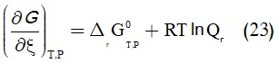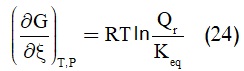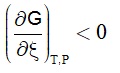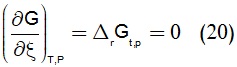 سالب عند حصول التفاعل التلقائي، وعند التوازن يصبح هذا المشتق معدوماً. أي كما في المعادلة (20):