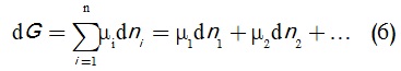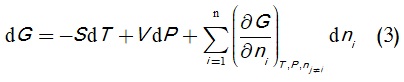 ففي جملة ترموديناميكية تضم n نوعاً مكوِّناً لها، بحيث يرمز إلى عدد جسيمات النوع i بالرمز ni، فعبارة تغير طاقة جيبس الحرة لهذه الجملة، تُكتب كما في المعادلة (3):