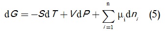 وبذلك تصبح عبارة تغير الطاقة الحرة لجيبس كما في المعادلة (5):