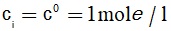 هو الكمون الكيميائي المعياري للنوع i، ويُعرّف على أنه الكمون الكيميائي للنوع كما لو أنه ممدَّد إلى ما لانهاية (أي تُهمل التأثيرات المتبادلة بينه وبين الأنواع الأخرى الموجودة في المحلول) وتركيزه