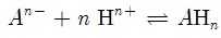 - مانح جسيمات: الحمض AHn، أو المعقّد MLn، أو الراسب MXn، أو المرجِع Red.