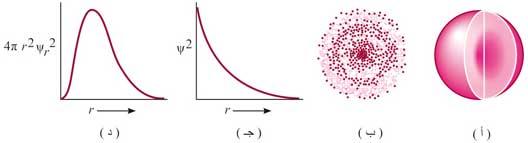 (د) الاحتمال الكلي لكون الإلكترون تابعاً للبعد عن النواة، تلاحظ القيمة العظمى.