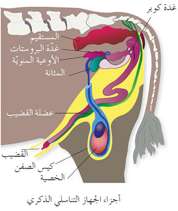 الشكل (11) الجهاز التناسلي الذكري ووظائفه في الحيوانات الزراعية. |