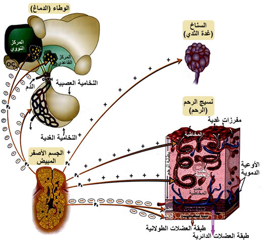 الشكل (8) الدور الحيوي للبروجِسترون في الجسم. |