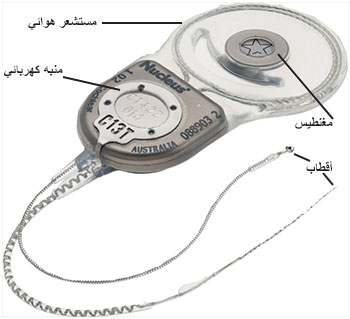 - التنبيه الكهربائي للعصب السمعي (زراعة الحلزون)، ويستخدم لمرضى الصمم الحسي العصبي (الشكل8).