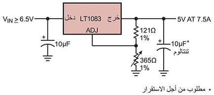 الشكل (7) منظم توتر مستمر باستخدام عناصر إلكترونية.