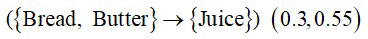 1. كان العنصران i1 و i2 موجودين سوية بنسبة لا تقل عن s% بالنسبة إلى كل السجلات. ويمثل كل سجل مجموعة جزئية بالنسبة إلى المجموعة الكلية العناصر.