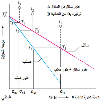 الشائبة Bفي الطور السائل للمادة A أمام النطاق، وفي طورها الصلب خلف النطاق على