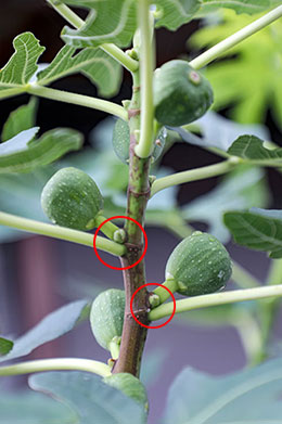 ويتوضع الحمل عند التين جانبياً في آباط الأوراق على نوعين من النموات، هما: