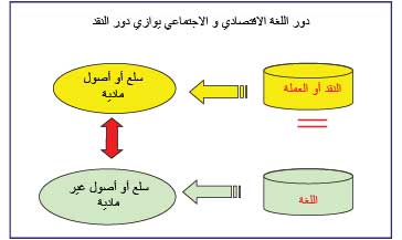 إن رأس المال البشري يوازي اقتصادياً رأس المال المادي، وتُّعدّ عائدات الاستثمار في كلٍّ منهما أساساً للنمو الاقتصادي. وإن تعلمَ اللغة العلمية والتقانية واستعمالهما باللغة الوطنية هو زيادة في رأس المال البشري. من جهة أخرى تقوم اللغة في الاقتصاد بدور يوازي الدور الذي يقوم به النقد (المخطط 1)؛ فالنقد هو الأداة الاقتصادية لتسهيل تبادل الأصول المادية كالسلع والخدمات، واللغة هي أداةٌ لتسهيل تبادل الأصول غير المادية أي المعرفة بكل أشكالها. وبناءً على ذلك تضع الدول سياستها اللغوية بهدف تنمية الأصول غير المادية في اقتصادها، مثلما تضع سياستها النقدية لتنمية الأصول المادية؛ وكلا السياستين مهمتان للاقتصاد. والجدير بالذكر أن معظم المبادئ والقوانين الناظمة للسياسة النقدية تنطبق على السياسة اللغوية.