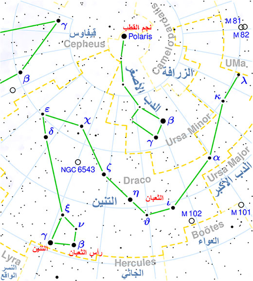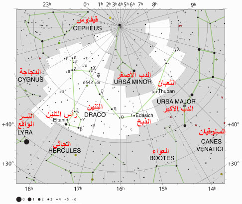 الشكل (2) موقع التنين بالنسبة إلى نجم القطب. |
