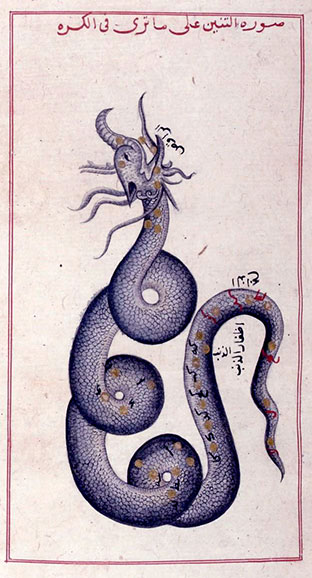 الشكل (5) صورة التنين في الكرة السماوية كما جاء في كتاب "صور الكواكب" للصوفي. |